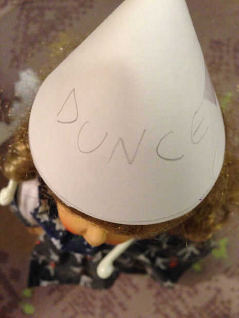 Crear un cono fuera del círculo, sacador de agujero a ambos lados, añadir la cuerda elástica, escribir burro en el cono y voila! Ahora tienes un burro oficialmente certificada!