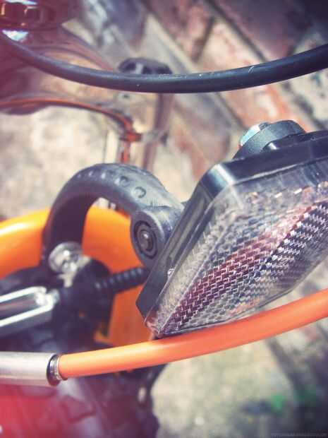 El reflector delantero caben en la horquilla; Utilice dos llaves de 10mm.