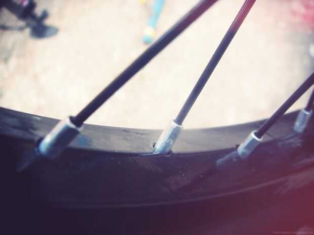 Si la llanta se frota en un lugar luego con una llave de radios deshacer el habló de ese lado media vuelta; los dos radios en el lado opuesto deben apretarse un cuarto de vuelta.