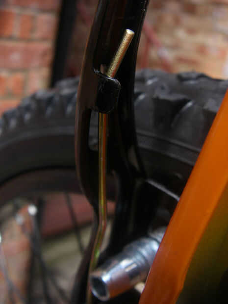 Saque esta curva esta hacia fuera (como se muestra) y lo pones de nuevo en el brazo del freno.