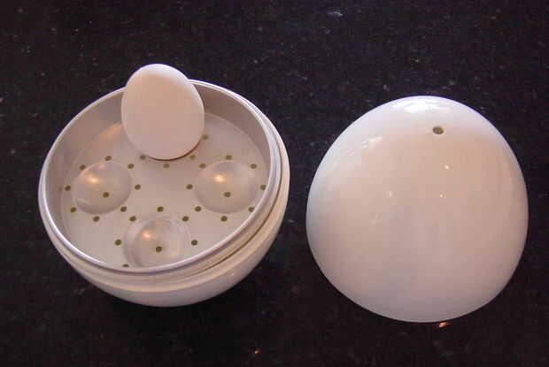 Cuando yo estoy sólo cocinar unos huevos uso este Nordic Ware microondas olla pero duro cocinar (hervir duro) los huevos quieras. Usando cualquier método que funciona mejor para usted.
