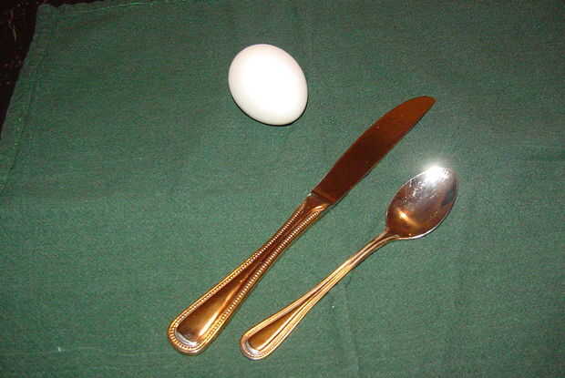 Duro cocinado huevos (duros) Cuchillo (puede ser un cuchillo de mantequilla de un tahúr del cuchillo como un cuchillo de cocina... su elección cuchara pequeña (cucharadita)