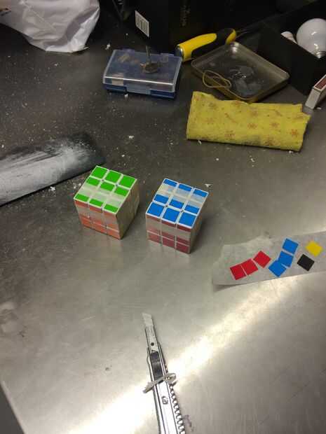Para el trabajo debemos evitar que los cubos de giro. Así que grabó en su estado resuelto. Después de haber grabado el rompecabezas y luego quitar las pegatinas de las piezas que vas a cortar.