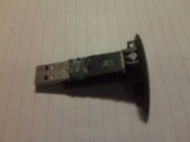 después de pegar ajuste su pendrive en el ratón para comprobar si se ajusta una vez más, después de tener un buen ajuste, espere a que el pegamento se seque luego de arena y así hacia fuera el pegamento con el pendrive se ve bien. Después de esperar y pintar el negro pegamento (o su elección de color) por lo que no se ve gracioso.