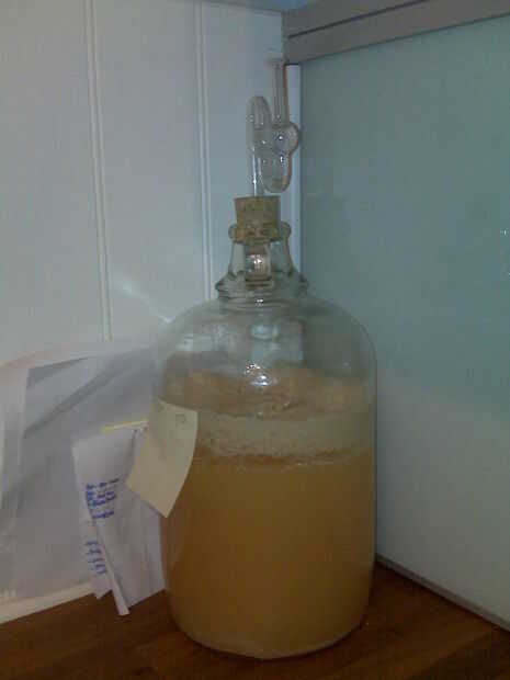 Luego simplemente añadir la esclusa de aire y dejarlo. Elaboración de la cerveza comenzará dentro de un día o menos y la mezcla forma una cabeza espumosa. Burbujas de aire se escaparán a través de la esclusa de aire.