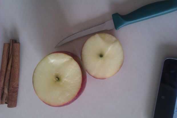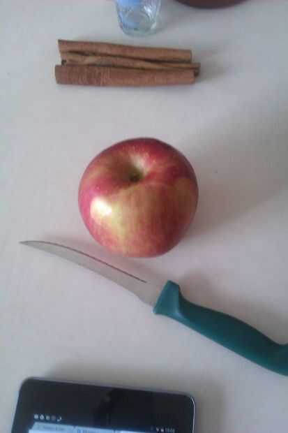 Coger un cuchillo y cortar la parte superior de la manzana.