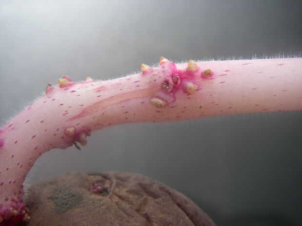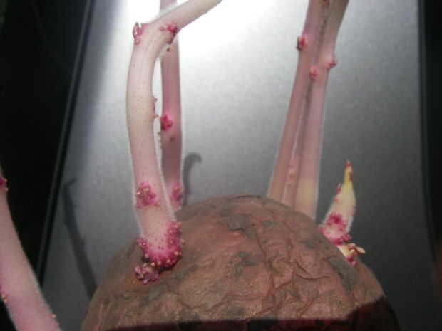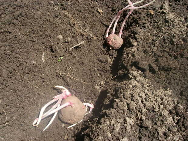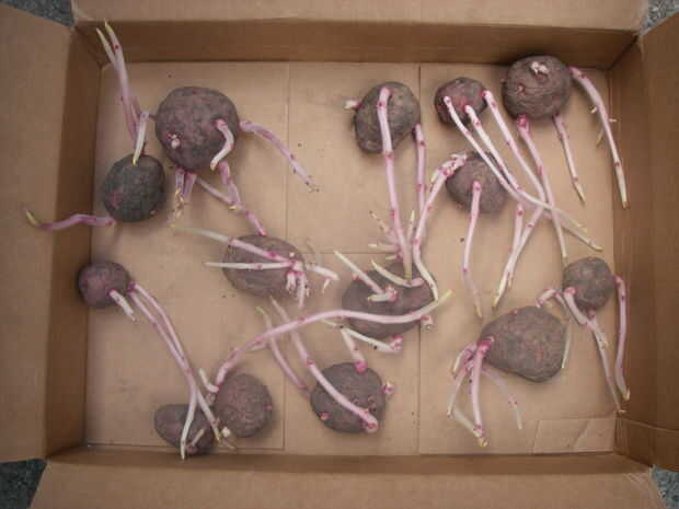 Empecé por la excavación de trincheras, cerca de 3 pulgadas de profundidad. Me entonces inserta las patatas con los brotes hacia arriba y por último, llenaba en las trincheras (dejando las puntas de los brotes sin cubrir).