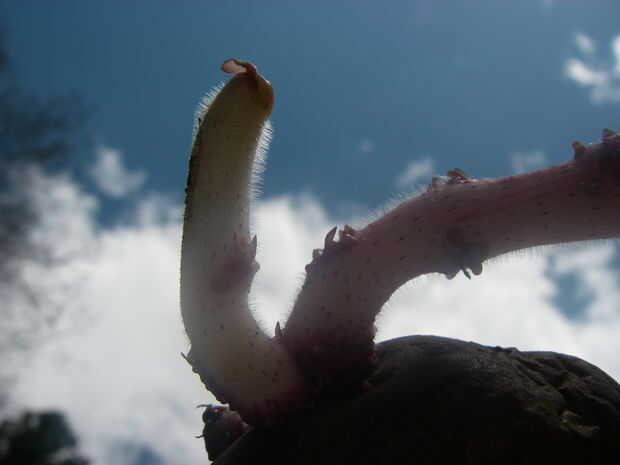 Las dos últimas fotos son de las misteriosas plantas que crecen en el lugar donde otras plantas se han negado a crecer, desde el alpiste (sí, alpiste) que habían golpeado a las ardillas del comedero durante el invierno.