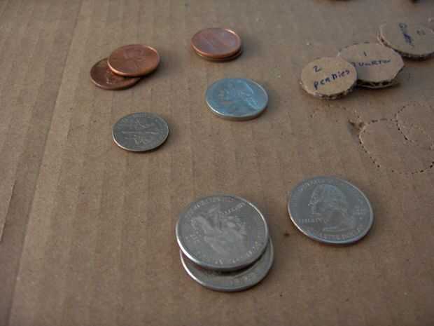 El proyecto es una manera de llevar estos 10 monedas fácilmente dentro de su cartera. He usado un pedazo delgado de cartón. Pero si usted puede utilizar la mayoría nada, recomiendo cualquier monedas apiladas 2 material gruesos y tienen suficiente fricción para sostener las monedas en su lugar.