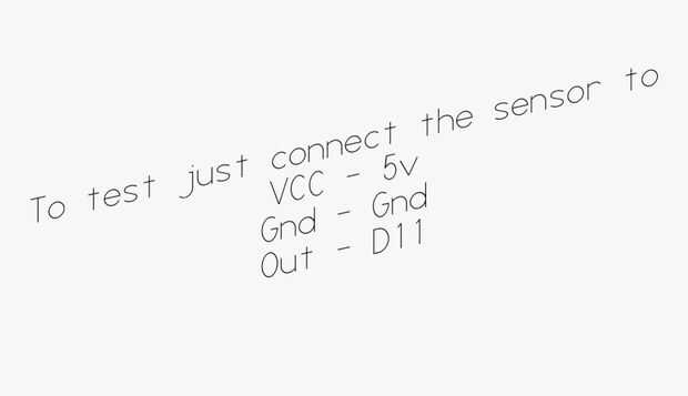 Para probar conectar a + 5v, Gnd y salida pines del sensor y pulse la tecla cuyo valor ya hemos puesto en el código de prueba.