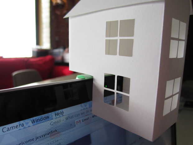 Dependiendo de tu webcam, tu casa se verá diferente según la profundidad fije. Trate de adjuntarlo para que usted obtenga las ventanas laterales en la visión clara. Siento que se ve mejor de esa manera y se siente más como una habitación. Scotch o masking Cinta trabajo maravillosamente esto. :)