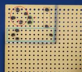 Montar el condensador de filtro en los orificios indicados en verde con el cable "+" en la posición mostrada.