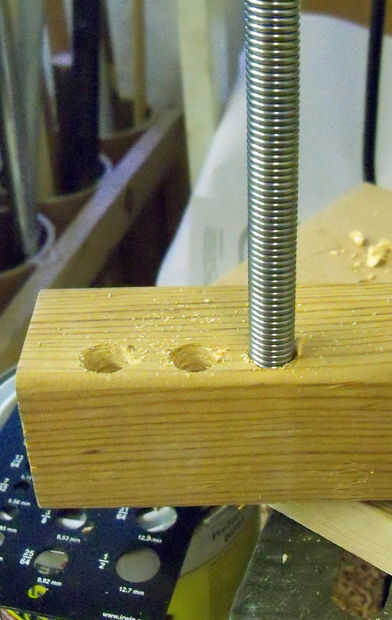 Agujeros de taladro si quieres tener un tornillo en la parte superior para garantizar las bobinas en la plantilla mientras se corte. Utilicé tornillos y tuercas de mariposa.