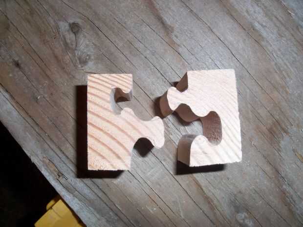 En un lado dibuje un patrón de puzzle con un lápiz y luego cortar a los cuales la línea. Después de que termines tomar el appart partes y dejar que cualquier aserrín hacia fuera. Es así de simple.