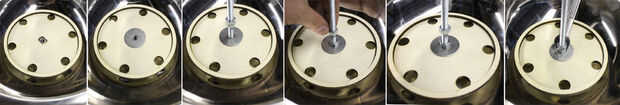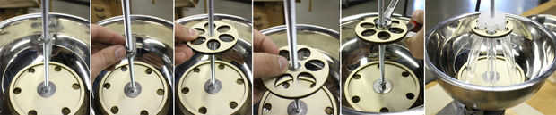 Utilizando un tubo de ensayo como una guía de la plataforma rotatoria superior fue colocada y asegurada con dos tuercas a ambos lados junto con las arandelas, entonces apretó.