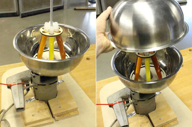 Después de la Asamblea de spinning se asegura los tubos de ensayo de carga puede cargar en el. Distribución del peso es fundamental en una centrifugadora y con una versión hecha en casa puede fácilmente equivocarse y causar una falla catastrófica.