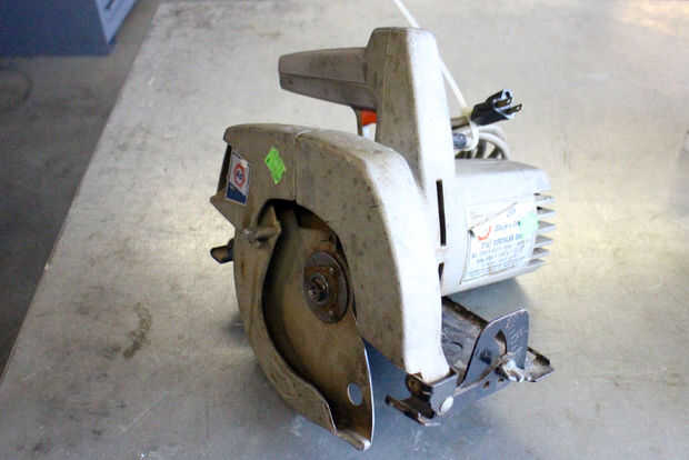 La acción de giro de esta centrífuga es hecha posible por una sierra circular que encontré en una tienda de rescate, que compré ésta por $7. La etiqueta se lee como un negro & Decker 7 1/2" sierra circular con un 4900 RPM del motor (B & D modelo número 7301) aunque esto dista mucho de centrifugadoras de cocinas, es adecuada para una demostración de los resultados aceptables principio y rendimiento.
