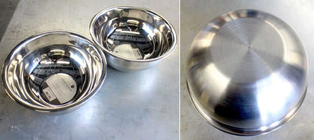 Para evitar que cualquier fallo volando a altas velocidades, que decidí construir un recinto alrededor del ensamblaje del spinning. Después se retiraron los guardias Sierra había unas aberturas roscadas en que podría utilizar para montar mi gabinete de acero. He encontrado barato 12" de diámetro (30cm) mezcla de tazones en mi almacén local, compré 2 para formar un gabinete completo.