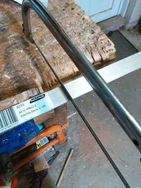 Mida la longitud del pie de la sierra. Añadir 15mm y marque el ángulo de hierro con esta longitud. Cortar el ángulo de hierro con la sierra. Este corte no necesita ser perfecto. Utilice el archivo para limpiar las rebabas de la pieza cortada para hacerla más segura y más precisa. Ahora han acabado su valla.