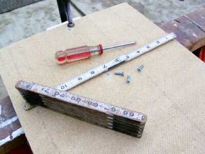decidí tener el paseo base de sierra en la superficie lisa de la masonita. Así, la superficie rugosa será hacia abajo en la guía de acabado. Aquí puede ver las dos piezas invertidas para el montaje. Medido por lo que los tornillos debían formar una línea hacia abajo en el centro de la guía. Un tornillo se instala cerca de 1 a 2 pulgadas desde el extremo. Luego coloqué tornillos cada 8 pulgadas. Las cabezas son avellanadas para que no arañan una superficie acabada en uso.