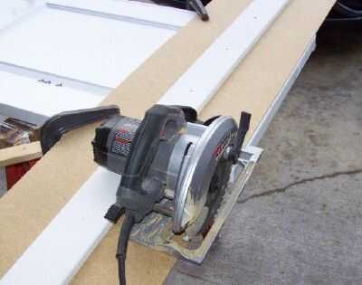 Uno de los problemas frecuentes con sujeción a un borde recto para guiar una sierra circular es que las abrazaderas tipo "C" obstruyan el movimiento de la sierra por colisionar con el motor housing.*, pero el Masonite en ambos lados de la Junta de compensación significa puedo sujetar la guía de corte por medio de la Masonite en el lado opuesto del corte de la Sierra , que es