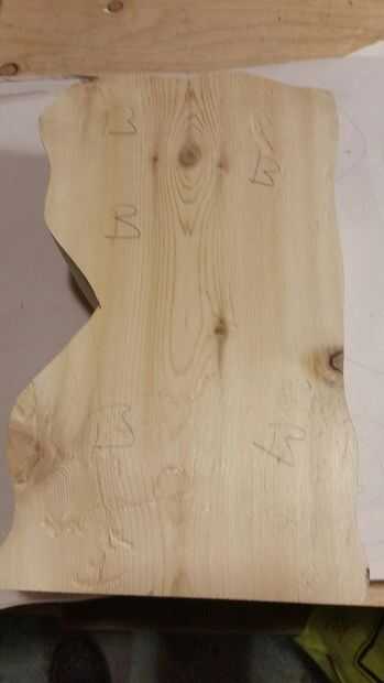 Necesitará una sierra de banda, taladro o broca router y ronda sobre, banda lijadora y arena papel. I utiliza cedro de 1 x 6 y 4 piezas ańd 1/4" madera contrachapada del abedul de laminado. Decidir sobre un diseño para su caja de Sierra de banda y tamaño depende de tu imaginación. Tenga en cuenta que no puede ser todo más profundo que sus sierras la profundidad de corte. Empecé con un bloque laminado de 6" 10 W"L 4"D y elaboró un diseño áspero. Después de cortar el exterior de la caja, trazado la forma de un pedazo de papel para hacer mi diseño final. También marqué las espaldas de todos los cajones para hacer las cosas más fácil más adelante