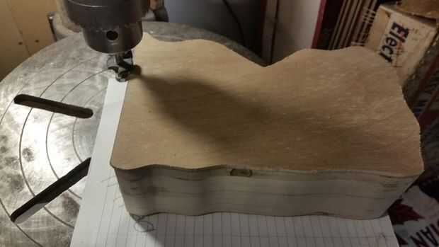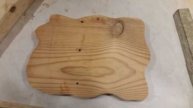 Encontró un trozo y cortar unos 3" más ancha y más larga que la parte inferior de la caja, cortar una forma interesante y utilizado mi lijadora de banda para dar los bordes cierta textura. También usé un poco más redondo para limpiar el borde en la parte posterior