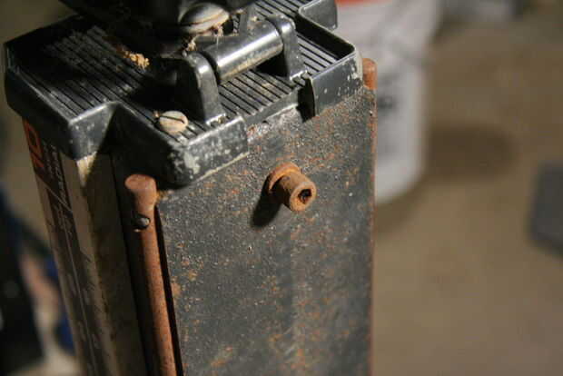 La única limitación en el movimiento de la hoja de sierra en el brazo era un pequeño tornillo de cabeza hueca. Quita, había liberado el freno, quitar el anclaje para el cable en espiral y se deslizó el motor del brazo.