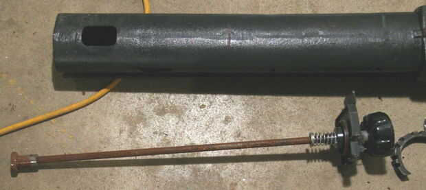 Incluso después de la limpieza hasta el punto de soporte del brazo, no podía desengrana el mecanismo de bloqueo. He quitado el largo eje que conecta la cerradura con el extremo del usuario del brazo y encontró el mecanismo oxidado. Después de limpiar las piezas y volver a montarla, trabajó el mecanismo de bloqueo.