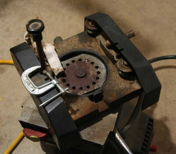 El carro se mueve sobre rodillos a lo largo de ejes de acero duros. Después de limpiar estos ejes con papel de lija, me di cuenta de que uno de ellos fue dañado donde los rodillos hacen contacto. Había dos franjas aplanadas del eje entero. Para solucionar el problema, rotaba cada eje. La orientación original incluyó un agujero escariado que acomodó la cabeza de los tornillos que fijan los ejes para el brazo. Cuando se gira, la cabeza de los tornillos sobresalga. Este complicado conjunto porque tenía que montar el motor en el brazo antes de asegurar que el extremo de los ejes para el brazo.