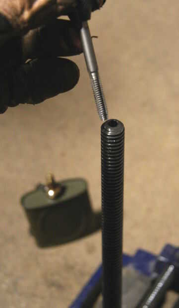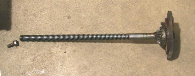 He modificado la sierra taladrar en el husillo (corre verticalmente dentro de la columna) y añadiendo una barra de 1/4" roscadas como una extensión. El ajuste vertical entonces podría ser operado hacia arriba y hacia abajo desde la parte superior de la columna.