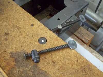 Se muestran dos abrazaderas tradicionalmente utilizadas en las sierras de brazo radial de todas las marcas de la tabla. Ordené a través de un depósito de piezas Sears menos de un año después de comprar mi sierra. Partes de sierras de brazo radial de Sears Craftsman a menudo están disponibles en eBay. Usted puede encontrar allí. Siempre podría tratar de obtener a través de un depósito de piezas de Sears.