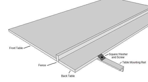 En algún tipo de movimiento de la economía, mi sierra vino con una arandela de acero en cada lado en lugar de abrazaderas de tornillo mecanizado del tipo visto en foto del anterior paso. Era prácticamente sin valor y no llevó a cabo la mesa trasera o la guía con seguridad.