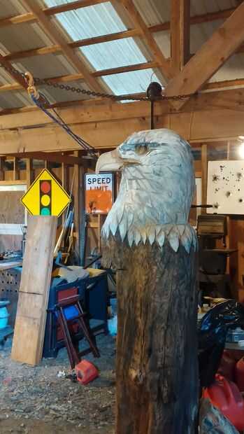 Sierra de cadena talla de una cabeza de águila (7 / 9 paso)