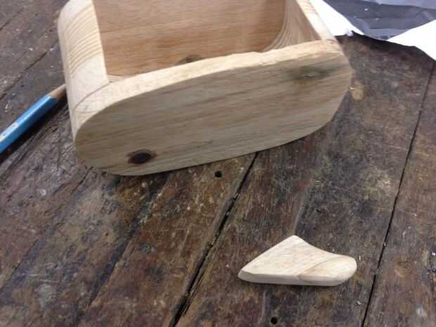 Corte lados del bloque de cajón y entonces cortar el pedazo de centro. Lo siento si la imagen es engañosa. Se cortan los lados frontales y posterior y luego se corta el centro. El interior de la arena suave pero no donde usted va ser pegar los lados en. La imagen muestra los lados pegados ya en.