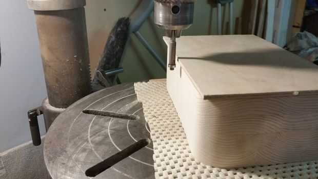 Pegué un trozo de contrachapado de abedul de 1/4" en la parte trasera del gabinete, luego cuando el pegamento se seca he utilizado una broca de recorte al ras para darle una ventaja agradable. Había redondeado de los bordes y lijar hasta grano 220. La base es una pieza de pino de chatarra que lijado con mi lijadora de banda para tallar en los bordes de la base para darle cierta textura. Usé la mancha roble dorada y mezclar con un poco de nogal un coupe de veces para conseguir las 3 capas de colores entonces 2 diferentes manchas de poliuretano para darle un brillo.