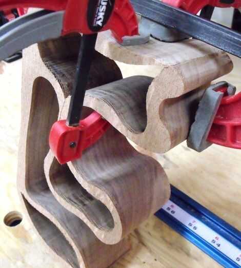 empezar con un bloque de madera que es ligeramente más grande que las dimensiones deseadas de la caja. En este caso me re-serrar diferentes espesores diferentes de especies de madera y pegada a todos juntos para formar mi bloque. Si haces esto debe F