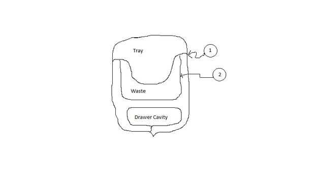 En este paso tenemos que marcar lo que queda de la base de la bandeja y el almacenaje principal vacía. No tomar una foto de este paso, pero he conectado un dibujo de lo que se hizo. El área de la bandeja tendrá que ser quitado primero. Corte en blanco de la bandeja y reservar. El vacío de almacenamiento entonces se extrae y descarta (alimentado al fuego).