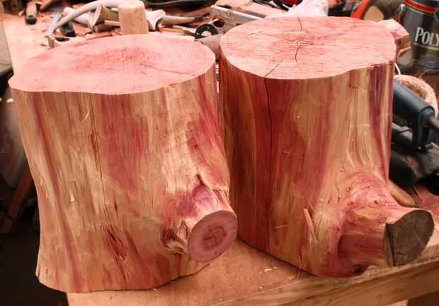 Porque mi cliente para este cuadro quería sólo duramen del cedro, tuve fractura de la albura. Si nos fijamos en las primeras fotos que usted verá el duramen de este registro es un color rojo distintivo. La albura es de color blanca. Porque este es el cedro, la madera se separa fácilmente. Utilizar un cincel ancho de 1 pulgada y un mazo para dividir la albura de los troncos.