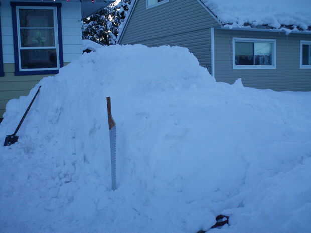 2. Si no tienes montones, no como lo hacen para Iglú de construcción, pala de nieve en una gran pila, algo con fuerza y la espera un par de horas.  El traspaleo de la acción habrá expulsado de exceso de aire y compactar la nieve.