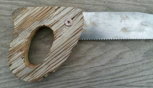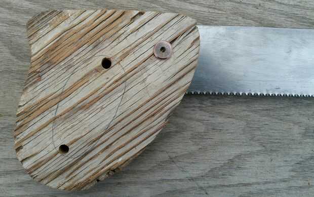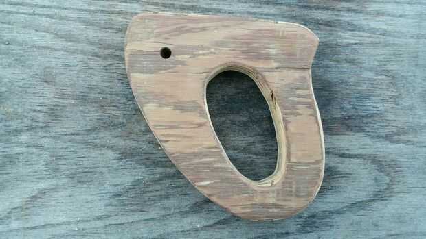 Luego recortar los bordes exteriores de la manija según sea necesario para que el borde era uniforme. Usé una escofina de madera para los cantos de la manija para que el mango se ajuste cómodamente en mi mano. Me lija la manija entera (Foto 2) y aplica 2 capas de barniz de poliuretano para proteger la manija. El poliuretano realmente oscureció la secoya a un color muy agradable.
