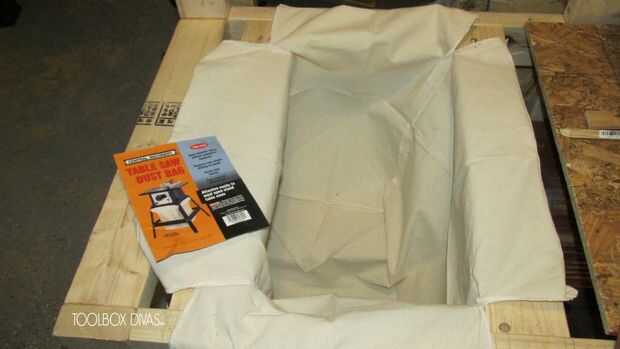Coloque la bolsa de polvo de Sierra de mesa. Encontré este bolso en el puerto de carga por $5.99.