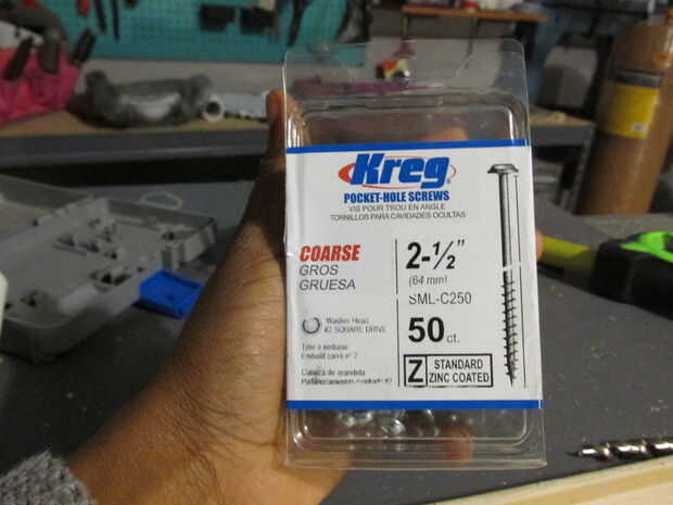 Para este proyecto usé tornillos de bolsillo como mi sujetador de elección. Mientras que los tornillos son un poco más caros que los clavos, tornillos, hizo corrección de errores mucho más fácil. Permite decir que corte una pieza incorrectamente, simplemente Desenroscar la pieza y lo reemplazó con la pieza adecuada. La longitud del tornillo se determina por el grosor de la madera. En este caso, usé 2 x 4, que en realidad es 1.5" de espesor. Así, según la tabla de Kreg Jig la longitud del tornillo apropiado para este proyecto es 2½ pulgadas.
