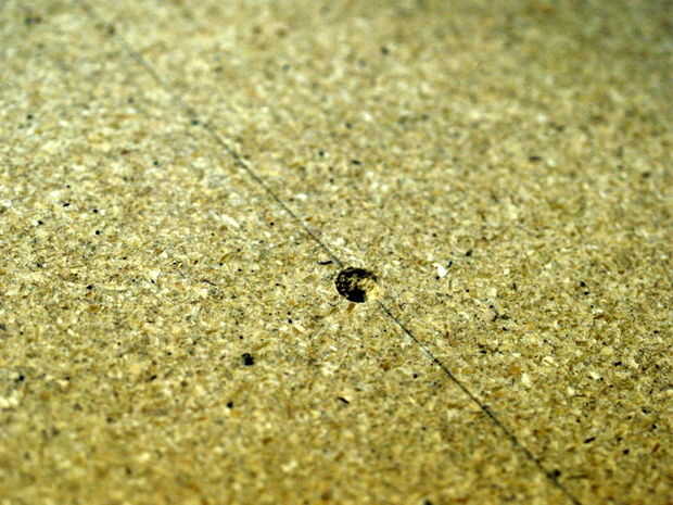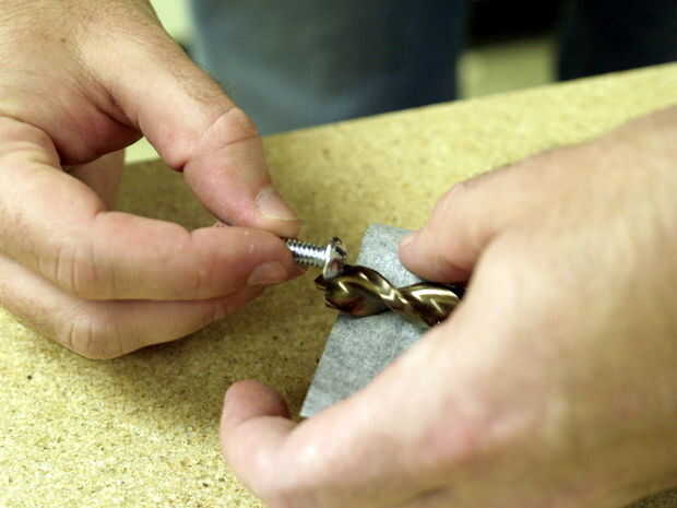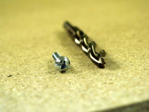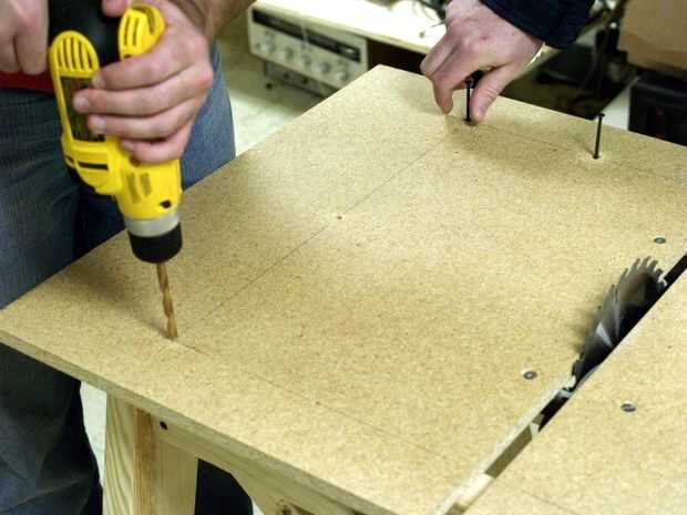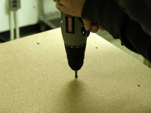 First, sand the edges. No queremos que los bordes ásperos captura estamos tratando de cortar de madera. Mantener en que mentalidad, tenemos que los tornillos para mantener la superficie lisa del avellanador. Como se muestra a continuación, elija una broca que es ligeramente más grande que la cabeza del tornillo, luego enmascarar la profundidad necesaria con un trozo de cinta. Si no tienes cuidado medir la profundidad, la mesa no apoyará la sierra circular. Para evitar taladrar demasiado profundo, nos presentó los extremos de los tornillos de 1/4" 20 hacia abajo por un par de milímetros.