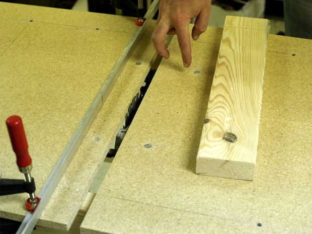 La mañana después de que hemos construido la tabla, compre un interruptor de pie para enchufe la sierra circular en y había montado con vínculos rápidos sobre el armazón. Esto no sólo mantiene los cables fuera del camino, sino que proporciona una indicación visual de si el sistema está enchufado en la pared. Además, el enorme botón rojo es un buen interruptor de emergencia. Lamentablemente, yo no tienen fotos de nuestra configuración final, pero publicaremos tan pronto como puedo hacer regresar al campus.