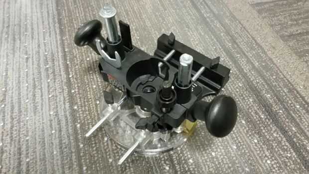 Coloque la broca de diamante (creo que tuve que usar una cuña de papel porque el collar era demasiado grande) entonces coloque el Dremel al adaptador router. Ahora invierta el router y apóyelo sobre la barra de 1 "X 1" en la esquina de cualquier mesa robusta. Mantener en su lugar y luego use las 2 abrazaderas para sujetar (yo usé abrazaderas de liberación rápida, porque es fácil hacerlo con 1 mano). No apriete las pinzas con demasiada fuerza u otra cosa podría romper el tope plástico del router. Casa la reja al deslizarla completamente en y apriete los tornillos de tope.