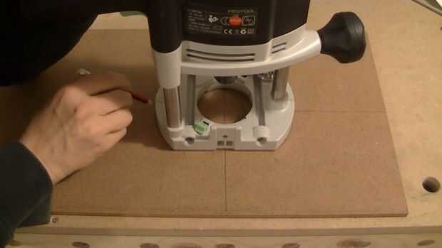 Para cortar el hueco que necesito una plantilla con la forma de la base de la fresadora. Por lo tanto simplemente rastrear el router en una pieza de MDF. Porque el radio del anillo de copia es más grande que la broca de 7 mm, tengo que añadir esto a la forma. Luego corté la plantilla en la Sierra de calar.