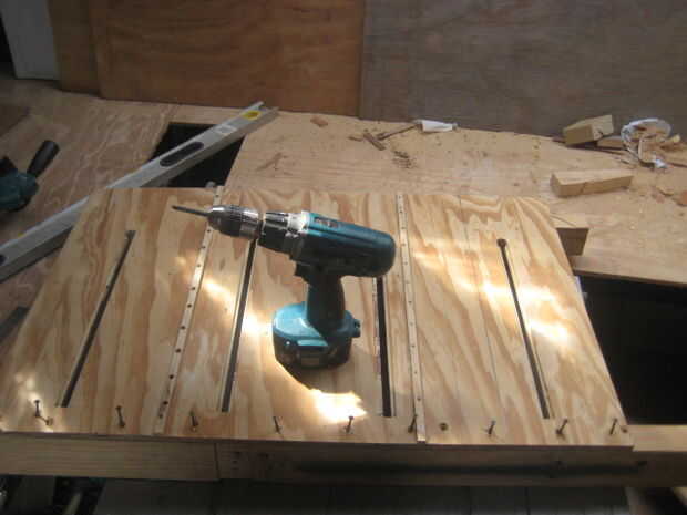 Una vez completamente feliz, se voltea el trabajo y coloque los tornillos cada dos pulgadas.