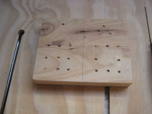 Yo necesito cortos tornillos, pero tiempo suficiente para hacer el trabajo, que no tenía, así que dio a cada una un agujero bastante profundo avellanado para la cabeza del tornillo. Los cuatro principales tornillos, he usado tornillos de listón de techo.