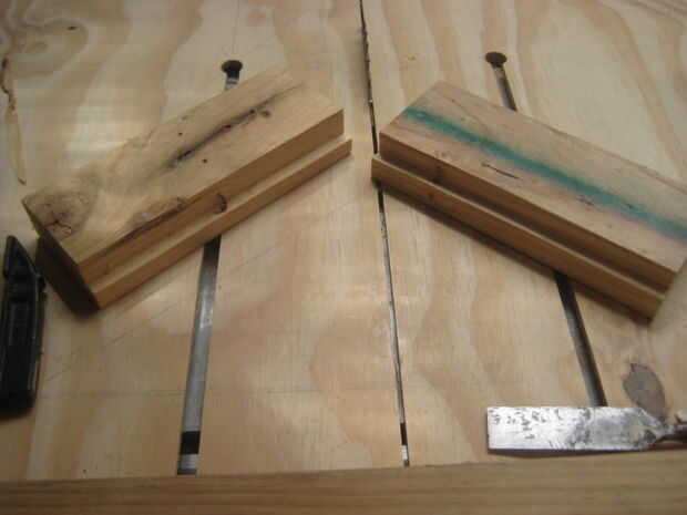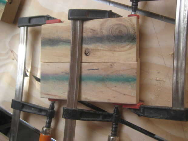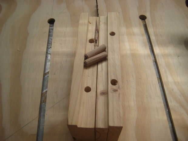 Para hacer la parte 1 de la misma que se fijará sobre el tablero trasero he usado 2, 45 x 90 de pegado, enclavijado y